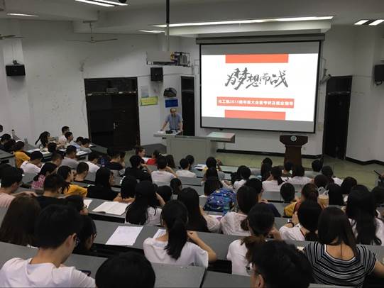 | 化工院學(xué)工隊(duì)伍開展學(xué)生指導(dǎo)交流會(huì)2018-09-07  作者:  編輯:陳剛  審核:  瀏覽:[]  開學(xué)前后,化工院按照學(xué)校要求,分專業(yè)年級(jí)召開了新學(xué)期大會(huì),總結(jié)上學(xué)期情況、分析問(wèn)題、做好新學(xué)期學(xué)生工作安排。 年級(jí)大會(huì)上,各專業(yè)輔導(dǎo)員老師就開學(xué)初的重要工作,包括學(xué)年鑒定、綜合測(cè)評(píng)、信息填報(bào)、獎(jiǎng)勤助貸等進(jìn)行了詳細(xì)說(shuō)明。 在2015級(jí)分專業(yè)年級(jí)大會(huì)上,學(xué)院副院長(zhǎng)張輝、唐鋆磊分別到場(chǎng)進(jìn)行考研動(dòng)員,輔導(dǎo)員闞文華分析了近年考研趨勢(shì),對(duì)大四學(xué)年學(xué)生面臨的考研、求職相關(guān)問(wèn)題進(jìn)行了講解。在2016級(jí)年級(jí)大會(huì)上,輔導(dǎo)員蔣勇鼓勵(lì)學(xué)生積極參與學(xué)科競(jìng)賽,以賽促練,以賽促學(xué),將專業(yè)學(xué)習(xí)真正通過(guò)實(shí)踐融會(huì)貫通。在化學(xué)工程與工藝2017級(jí)年級(jí)大會(huì)上,輔導(dǎo)員謝娜就學(xué)分績(jī)點(diǎn)和四六級(jí)過(guò)級(jí)情況做了詳細(xì)分析,她說(shuō):“學(xué)業(yè)是學(xué)生的基礎(chǔ),成績(jī)是學(xué)習(xí)態(tài)度與方法的綜合體現(xiàn),希望同學(xué)們能夠合理利用時(shí)間,爭(zhēng)取大二學(xué)年在學(xué)業(yè)上有更大的進(jìn)步。” 新學(xué)期要有新目標(biāo),更要有新規(guī)劃。學(xué)院黨委副書記陳剛在9月2日舉行的環(huán)境工程與安全工程2017級(jí)年級(jí)大會(huì)上,向同學(xué)們提出了4點(diǎn)希望:第一,積極調(diào)整,及早收心。他希望同學(xué)們能夠認(rèn)真總結(jié)上一學(xué)年的經(jīng)驗(yàn)與不足,積極調(diào)整自我的狀態(tài),查漏補(bǔ)缺。第二,明確目標(biāo),合理規(guī)劃。他談到,經(jīng)過(guò)一年的學(xué)習(xí),同學(xué)們對(duì)專業(yè)有了較多認(rèn)識(shí),應(yīng)做好學(xué)業(yè)規(guī)劃,用實(shí)際行動(dòng)踐行理想,并利用課余時(shí)間提高自己的綜合能力。第三,強(qiáng)化自律,服從管理。他希望每位同學(xué)都嚴(yán)格要求自己,按時(shí)上課,不遲到、不早退、不曠課,模范遵守校紀(jì)校規(guī),共同維護(hù)良好教學(xué)秩序,創(chuàng)建優(yōu)良學(xué)風(fēng)。第四,牢記安全,明辨是非。他強(qiáng)調(diào),寢室內(nèi)要注意安全用電,進(jìn)入實(shí)驗(yàn)室要規(guī)范操作,注意防火防盜防詐騙,同時(shí)要有責(zé)任感、勇?lián)?dāng),不傳播虛假信息,不轉(zhuǎn)發(fā)非法信息, 自覺抵制網(wǎng)絡(luò)不良信息。 來(lái)自2017級(jí)環(huán)境工程專業(yè)的何琳同學(xué)表示:“聽了老師的期望和囑托,新學(xué)期我要做好時(shí)間管理,合理安排自己的學(xué)習(xí)生活,把學(xué)分績(jī)點(diǎn)提上去,爭(zhēng)取盡快通過(guò)六級(jí),在專業(yè)上有更大的進(jìn)步。”