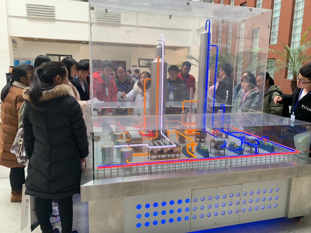 12月17日上午,化學(xué)化工學(xué)院“校園開放日”活動(dòng)于明德樓舉行,接待了來自漢源中學(xué)的50余名師生,旨在通過“校園開放日”的方式,幫助同學(xué)們了解我校教育環(huán)境和教育氛圍,培養(yǎng)同學(xué)們對(duì)科學(xué)的興趣。 活動(dòng)開始前,化學(xué)化工學(xué)院黨委副書記陳剛向漢源中學(xué)的師生們致辭歡迎,簡(jiǎn)單介紹了化工院的基本概況及說明了此次活動(dòng)的流程及形式,宣布本次“校園開放日”活動(dòng)的正式開始。隨后,化工院實(shí)驗(yàn)室主任朱鵬飛老師對(duì)化學(xué)化工學(xué)院進(jìn)行了總體介紹,包括學(xué)院發(fā)展歷程、人才培養(yǎng)項(xiàng)目、專業(yè)學(xué)科建設(shè)、研究基地、師資隊(duì)伍等多個(gè)方面,使同學(xué)們對(duì)于化學(xué)化工學(xué)院有較為全面的了解。 本次“校園開放日”活動(dòng)園區(qū)分為四個(gè)分區(qū),分別為模型展示區(qū)、科普展覽與對(duì)話區(qū)、實(shí)驗(yàn)體驗(yàn)區(qū)。漢源中學(xué)的同學(xué)們以游園的形式體驗(yàn)參觀了四個(gè)區(qū)域,在不同區(qū)域完成體驗(yàn)可獲得印章,集齊四枚印章可領(lǐng)取紀(jì)念禮品,極大調(diào)動(dòng)了同學(xué)們的參與積極性。與大學(xué)生志愿者們一同做實(shí)驗(yàn),面對(duì)面交流溝通,漢源中學(xué)的同學(xué)們獲得了更多的主觀體驗(yàn)和感受,提前感受到了大學(xué)學(xué)術(shù)氛圍。 其中,模型展示區(qū)由我院2015級(jí)的唐林茂同學(xué)進(jìn)行講解,模型包括煉油生產(chǎn)裝置和輔助設(shè)施兩大部分,以黃色的流動(dòng)光柱模擬石油的煉制過程。唐林茂同學(xué)介紹了煉油廠構(gòu)成概況、工藝流程和煉制產(chǎn)品,根據(jù)模型詳細(xì)講解了柴油加氫、連續(xù)重整、催化裂化、延遲焦化等煉制過程。 科普展覽與對(duì)話區(qū)的志愿者學(xué)生向漢源中學(xué)的同學(xué)們介紹講解了化學(xué)與我們生活中方方面面的聯(lián)系,食品、農(nóng)業(yè)、紡織、醫(yī)療……生活處處有化學(xué),同學(xué)們積極發(fā)言,和學(xué)長(zhǎng)學(xué)姐們進(jìn)行了探討和交流,進(jìn)一步感受了解了化學(xué)的奧秘。 在實(shí)驗(yàn)體驗(yàn)區(qū),我院志愿者學(xué)生向漢源中學(xué)的同學(xué)們展示了“多彩的顏色反應(yīng)”、“氧氣復(fù)燃”和“人造雪”這三個(gè)有趣小實(shí)驗(yàn),激發(fā)了同學(xué)們對(duì)趣味實(shí)驗(yàn)的好奇和動(dòng)手做實(shí)驗(yàn)的熱情。同學(xué)們看到實(shí)驗(yàn)現(xiàn)象積極發(fā)問,學(xué)姐學(xué)長(zhǎng)們耐心地講解現(xiàn)象和原理,解答大家的疑惑。了解實(shí)驗(yàn)原理和操作后,同學(xué)們自己動(dòng)手嘗試進(jìn)行實(shí)驗(yàn),近距離接觸到和領(lǐng)略了化學(xué)之美。 此次校園開放日,展示了化學(xué)化工學(xué)院學(xué)院風(fēng)采,給學(xué)生留下了深刻印象。漢源中學(xué)一位同學(xué)參觀后說道:“很感謝化工院這次校園開放日活動(dòng),讓我提前走入大學(xué)感受到大學(xué)的教學(xué)氛圍和學(xué)習(xí)環(huán)境,這是一次眼界的開拓,尤其是第一次接觸到布局完整精巧的煉油廠模型,感受到了石油煉制裝置的精妙,真是大開眼界。同時(shí)此行讓我對(duì)于大學(xué)生活充滿向往,也是對(duì)自己的鞭策和激勵(lì),提醒自己要做好學(xué)業(yè)和人生的規(guī)劃,從現(xiàn)在的高中學(xué)習(xí)階段開始樹立目標(biāo),努力奮斗。”(圖/文賈艷楠)