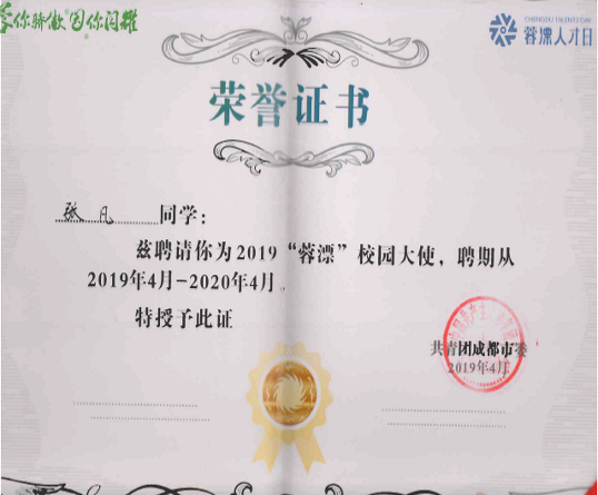 由市人才辦主辦、團市委承辦的“蓉漂”校園大使選拔中,化工院研究生、化學工程與技術2017級張凡,通過層層篩選,作為我校唯一入選學生,成為2019年全市20名“蓉漂大使”之一。 此次“蓉漂”校園大使選拔活動是成都首個“蓉漂人才日”系列活動的重要組成部分,自3月中旬啟動以來,1100多人報名參與,張凡結合自身經歷,突出重圍,在2019年“蓉漂”校園大使決賽中,與來自四川大學、電子科技大學等26所在蓉高校的30名選手開啟了“蓉漂”校園大使的角逐,最終作為我校唯一入選學生,入選20名“蓉漂”校園大使行列。接下來,他將在各高校積極開展“蓉漂計劃”的宣傳推廣活動,助力我校發揮高校人才區域引領作用,助力城市經濟發展,為成都建設人才強市貢獻青春力量。
