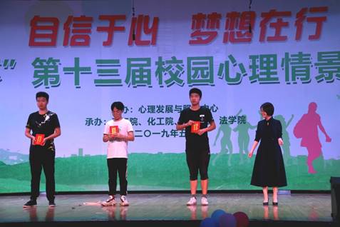 | 【喜報】化工院榮獲第十三屆“自信杯”校園心理情景劇大賽二等獎2019-06-04  作者:化工院心理部  編輯:陳剛  審核:  瀏覽:[]  5月25晚7:00,由學校心理發展與服務中心主辦,石工院、化工院、藝術院、法學院承辦的“自信杯”第十三屆校園心理情景劇大賽在藝術大樓演播大廳201如期舉行。 經過前期初賽、復賽的層層選拔,我院《世界以痛吻我,我要報之以歌》劇組與石工院、經管院、理學院、地科院、土建院的隊伍成功晉級,站上了本次決賽的舞臺。
