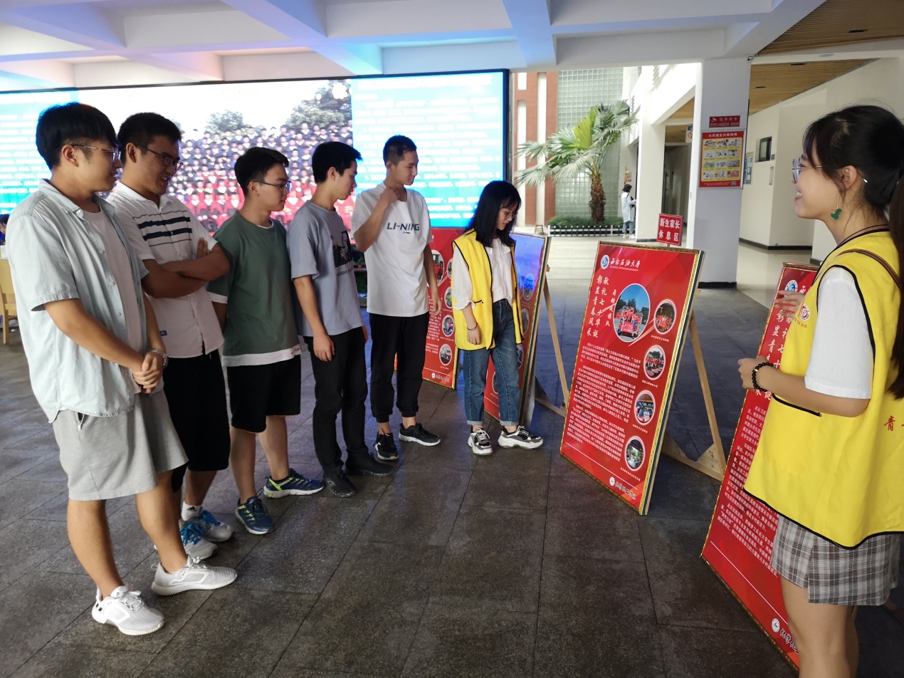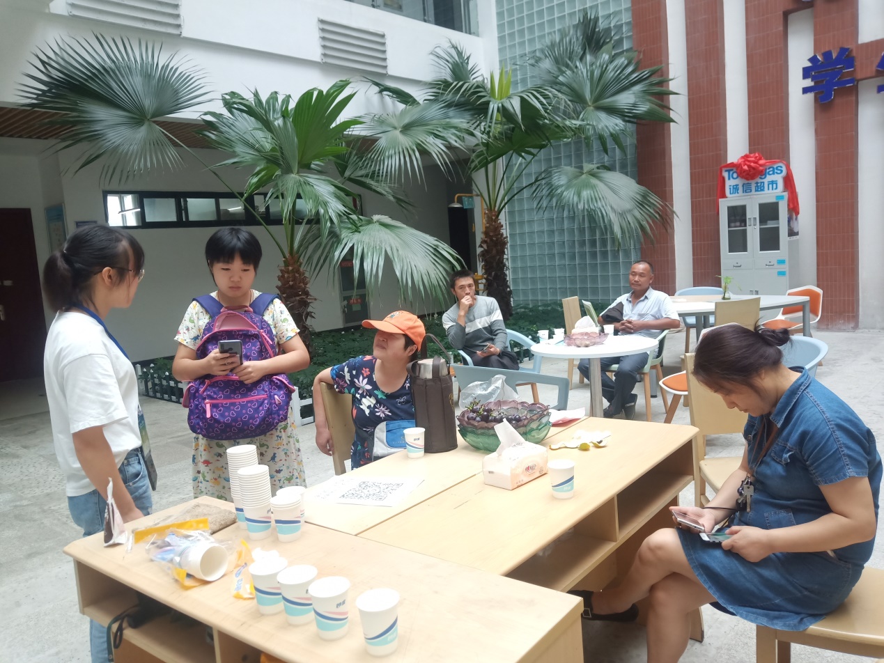 家長休息區(qū)一角 明德樓里,新生在志愿者的耐心講解下,不時駐足觀看我院特色簡介宣傳展板與我院優(yōu)秀學生實踐隊伍風采展板,有一位新生這樣談到,“看著學院這么優(yōu)秀的師資力量和雄厚的學科實力以及學長學姐們的風采事跡,我一定也能向他們一樣,未來的學習生活一定能過的如朝陽一般活力蓬勃,我也一定能向他們一樣將自己以后所學的專業(yè)知識應用于田間地頭,幫助更多需要幫助的人!”