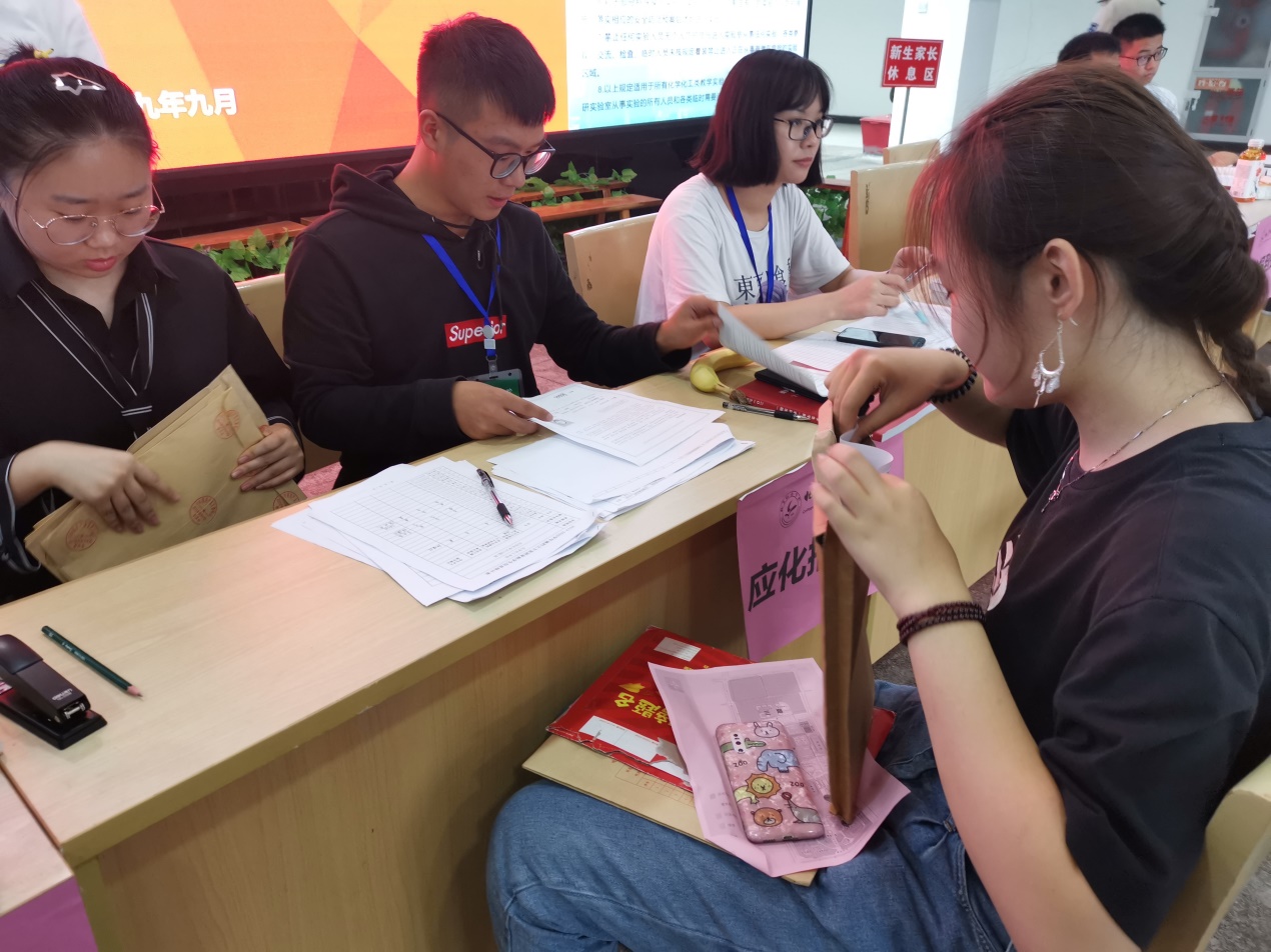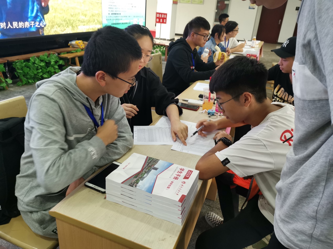 明德樓里新生在志愿者幫助下完成檔案交接