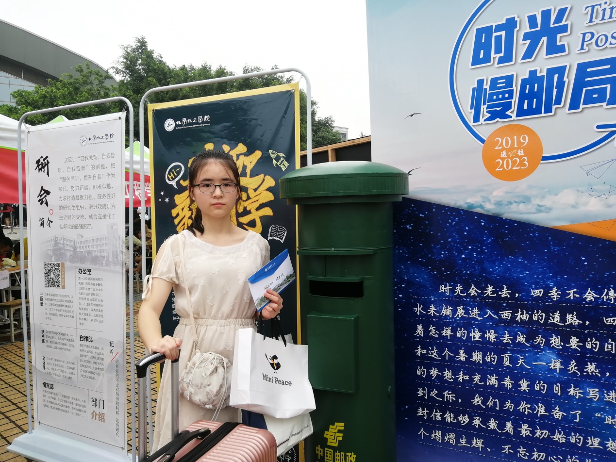 元素大道中的新元素 迎新點處:“時光郵筒”直達不忘初心的你 在博學廣場上各學院都以各自的方式吸引和指導著新生走向?qū)W院的迎新點,而化工院以獨特的“時光慢郵局”便吸引了諸多新同學和學校眾多師生的駐足留意,融合了化工院學科特色的時光郵筒令新生和家長們耳目一新的同時,也一下子拉近了化工學子與化工院學科特色之間的距離。據(jù)悉,化工院為新生特別郵寄“化工院新生夢想約定,致四年后自己的一封信”,愿新生們能以這封信承載著最初始的理想,直達四年后那個熠熠生輝、不忘初心的你。 一個新生在信里寫到:“不知道四年后的你是什么樣的呢?有沒有很努力,很自信?是不是已經(jīng)變成了很厲害,很厲害的人,做著我現(xiàn)在做夢都想要做的事?是不是已經(jīng)走到了想要到達的地方?不過,不管怎么樣,只要沒有讓自己失望就好,跟隨自己的心,前進吧!”她表示,在這封信里,自己寫下了對未來的期待,和對自己的期望,希望自己在充滿未知的大學生活里,能夠真的做到腳踏實地,從一而終,不后悔也不失望。同時,化工院在迎新點設(shè)置的新生留言簽字板也給新同學留下了深刻的印象,并吸引著很多新同學主動積極地留下自己在石大校園的“第一筆”。