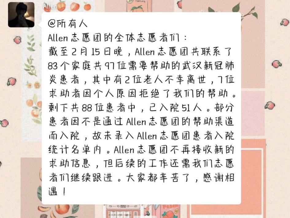 王紅彬檢查車輛 除了線下支援排憂解難,網(wǎng)絡(luò)防控疫情接力更成為了這次抗擊疫情過程中的重要一環(huán)。 應(yīng)用化學(xué)2018級(jí)的袁晴,通過微博發(fā)起的志愿團(tuán)活動(dòng),每天24小時(shí)不間斷搜集疫情求助者信息,幫助患者及家屬購買物資,聯(lián)系醫(yī)院。這項(xiàng)活動(dòng)得到《人民日?qǐng)?bào)》湖北分部總編支持,主動(dòng)將信息傳遞給國家督導(dǎo)組,幫助患者盡早被收治。截至2月15日晚,袁晴所在志愿團(tuán)共聯(lián)系83個(gè)武漢新冠肺炎患者家庭,為他們提供幫助。