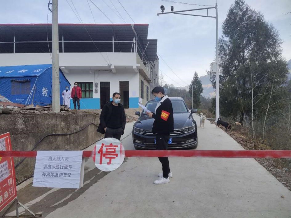 吳建松幫助工作人員 為了第一時(shí)間摸清居民情況,做好防控排查與物資保障工作,應(yīng)用化學(xué)2016級(jí)志愿者王紅彬就在村口臨時(shí)搭建的小帳篷里湊合過夜,“這些工作總需要有人來做,為什么不能是我?”