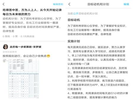 開始線上教學以來,化工院學生對網絡教學表現積極,主動克服困難完成學習任務。學生通過課前預習+自主思考+主動發問+課后鞏固+習題答疑的線上學習模式,紛紛從“要我學”轉變為“我要學”。 為更好的進行在線學習,明確學習目標和計劃,化工院學生創建“目標動機和計劃”公開版,在公開版上樹立目標,制定計劃并進行自我反思。根據老師的指導,學生主動提前自主安排學習活動,上課前規劃好預習時間,備齊學習資料,課后及時通過聯絡群中的學習資源進行自我檢測,有同學在公開版上寫到:“吃得苦中苦,方為人上人,從今天開始記錄每日為未來做的努力?!?/span>