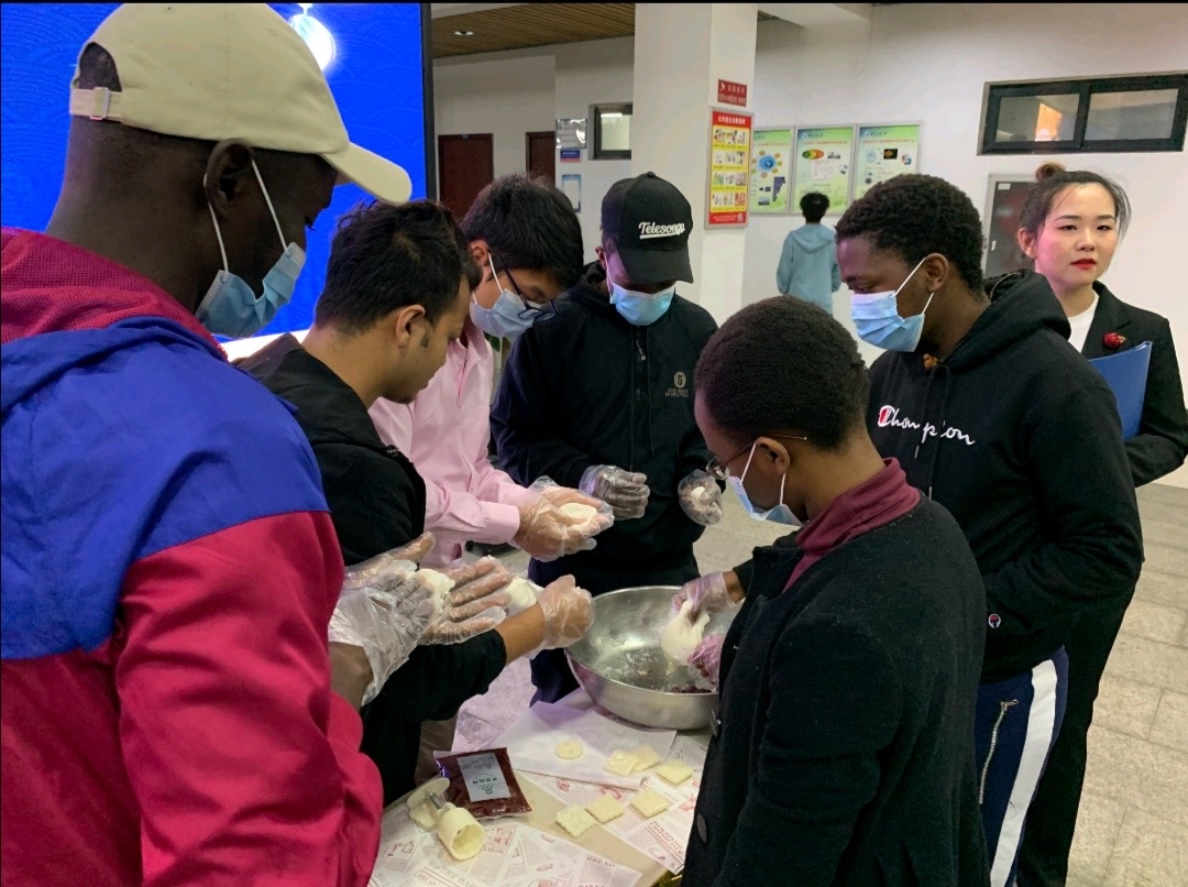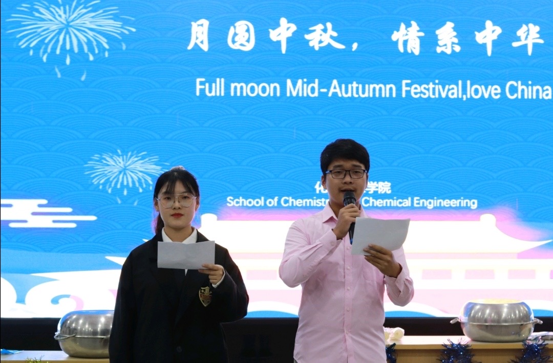 9月28日晚,化學化工學院團委學生會舉辦了“月圓中秋,情系中華”中外學生傳統文化交流活動。 活動通過經典歌曲演唱、傳統詩詞朗誦、傳統書法及剪紙展示、猜燈謎贏好禮、英文歌曲欣賞以及制作月餅環節進行開展。 活動中,首先以視頻讓大家了解中秋節的由來,生動有趣的卡通人物令人耳目一新,畫面中祖孫倆邊做月餅邊交談中秋節的由來將同學們帶入了節日的氛圍,同時增強了對中秋節的了解。之后,張琪和李菁兩位同學為大家帶來經典歌曲《明月幾時有》,更是掀起了現場大合唱。朗誦環節,趙若彤和田志浩兩位同學聲情并茂的表演了《中秋賦》,在傳統詩詞的誦讀中,讓同學們感受到中秋節的文化底蘊。