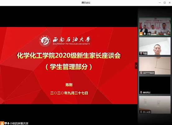 受新冠肺炎疫情影響,9月27日晚上7點30分,化工院2020級本科新生家長交流會通過線上騰訊會議方式進行。學院黨委書記王兵、黨委副書記陳剛、副院長王林元、副院長張輝,2020級新生輔導員闞文華、宋姝蕾,以及2020級新生家長出席了本次交流會。會議由陳剛主持。 首先,王兵代表學院對家長的參會表示熱烈歡迎,感謝家長與學生選擇了西南石油大學化學化工學院,王兵從學院發展,學科背景、師資隊伍、科研工作、專業前景等方面做了詳細講述。隨后,陳剛從學院各專業招生錄取情況、往屆學生就業情況、校園活動、評獎評優、校規校紀等方面展開講解,陳剛表示:“家長不認可的教育,是蒼白無力的教育。家長參與的教育,是充滿活力的教育”,并希望家長能夠在學生今后的大學生涯中,與學院充分配合,做好家校聯動,共同陪伴學生成長。接下來,張輝從學習要求、學分及學業預警、畢業要求等教學管理方面為家長們進行講解。最后,學院領導針對家長提出的各類問題進行耐心解答,整場交流會持續3個半小時。 座談會上,家長紛紛表示,通過老師們的細致講解,對大學期間學生的教育有了清晰的認識,希望能夠與學院一到,共同做好家校共育,幫助學生成長。 (文/常睿石 圖/闞文華)