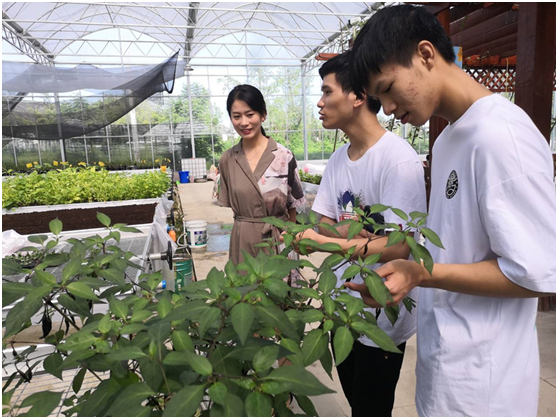 圖1 學院勞動實踐教育基地授牌 “仟卉園”是一個集果蔬批發、休閑采摘、觀光旅游為一體的400余畝智慧生態園,視頻監控農業生產現場、數據采集生產過程,遠程遙控卷簾、灌溉、風機……整個園區全線搭建水肥一體化成套設備,依靠智慧農業系統進行管理。園區創始人黃莉嵐帶領同學們參觀蔬菜種植基地,幫助同學深入了解三農,學習現代農業科普知識,體驗育苗播種的樂趣。化工院2019級應用化學1班學生戴思凱說,參加這次活動,他學習到了有關植物生長的知識,感受到了農民的艱辛與食物的來之不易。