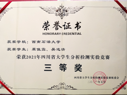 2021年7月23-25日,第一屆四川省大學(xué)生分析檢測實(shí)驗(yàn)競賽在成都師范學(xué)院順利舉行,我院學(xué)生賈鴻珊、吳玉潔組成的二隊(duì)榮獲二等獎(jiǎng),原佳露、吳達(dá)清組成的一隊(duì)獲得三等獎(jiǎng)。 本次競賽由四川省教育廳主辦,成都師范學(xué)院承辦,四川省化學(xué)化工學(xué)院協(xié)辦,來自四川大學(xué)、西南交通大學(xué)、西南民族大學(xué)、成都理工大學(xué)、西南石油大學(xué)等14所兄弟院校的36支隊(duì)伍參加了此次競賽。競賽分為化學(xué)理論知識(shí)考核(40%)和實(shí)驗(yàn)操作考核(60%)兩部分,其中理論考核內(nèi)容涵蓋四大化學(xué)基礎(chǔ)知識(shí)和分析化學(xué)實(shí)驗(yàn)方案設(shè)計(jì),實(shí)驗(yàn)操作考核內(nèi)容主要為本科分析化學(xué)實(shí)驗(yàn),實(shí)驗(yàn)方案自行設(shè)計(jì),兩部分綜合考察學(xué)生對化學(xué)理論知識(shí)的掌握和運(yùn)用程度以及分析檢測實(shí)驗(yàn)技能。經(jīng)過兩天的激烈角逐,大賽組委會(huì)共評出一等獎(jiǎng)4名、二等獎(jiǎng)7名、三等獎(jiǎng)11名,成績客觀、公平、公正,所有參賽高校評委在評分過程中全部回避本校參賽隊(duì)伍,鄭勇老師受邀為評委對其他高校參賽隊(duì)伍的實(shí)驗(yàn)技能進(jìn)行了考核評判。 賽前,朱鵬飛和鄭勇老師對參賽隊(duì)員進(jìn)行了全面細(xì)致的指導(dǎo)和培訓(xùn),參賽隊(duì)員也認(rèn)真積極準(zhǔn)備競賽,共同學(xué)習(xí)、互相指正,堅(jiān)持練習(xí)以提升自己的實(shí)驗(yàn)技能。賽后,參賽隊(duì)員與指導(dǎo)老師共同對本次比賽進(jìn)行了全面客觀的總結(jié)與反思:參與本次比賽不僅檢驗(yàn)了學(xué)生的實(shí)驗(yàn)操作技能,且培養(yǎng)了學(xué)生嚴(yán)謹(jǐn)認(rèn)真、實(shí)事求是的科學(xué)態(tài)度,比賽結(jié)果同時(shí)也反映出學(xué)生對于化學(xué)基礎(chǔ)知識(shí)掌握得不夠扎實(shí),實(shí)驗(yàn)方案設(shè)計(jì)能力有待提高,實(shí)驗(yàn)操作規(guī)范有待加強(qiáng)等問題,這也為以后的學(xué)生的學(xué)習(xí)和老師的教學(xué)指明了方向,達(dá)到了“以賽促學(xué)、以賽促教”的目的。 (文/原佳露 賈鴻珊 圖/鄭勇)