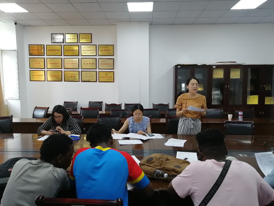 為做好疫情防控工作,確保在華國際學生暑期留校安全,告誡國際學生遵守法律法規。2021年6月28日下午4:30,化學化工學院于明德樓A523組織開展國際學生防疫、安全、法紀教育年級大會。鄭璇,曾雅清,任虹宇出席本次會議。 會議第一部分,任虹宇作為會議主持人為國際學生宣講了暑假具體安排,暑假期間留校的用電,防火等安全注意事項以及疫情防控形勢和疫情防控工作安排。緊接著引例國際學生違規前科告誡國際學生一定要嚴格遵守學校的相關規定,一經查處將從嚴從快處理。 會議第二部分,任虹宇分發了《國際學生寒暑假留校申請表、安全承諾書》,國際學生簽字上交備份。 會議最后,鄭璇,曾雅清為國際學生解答有關暑假安排的疑惑,并就期末復習備考階段提醒國際學生認真復習,積極備考,告誡國際學生務必要遵守考規考紀,杜絕任何徇私舞弊的想法和行為。