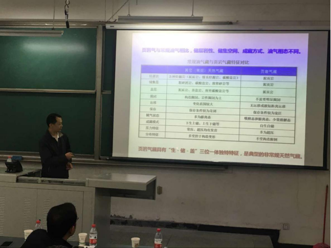 4月26日上午九點,江漢石油工程技術研究院完井所所長李遠照受化學化工學院和科研處的邀請,來到我校明德樓A201室進行以《頁巖氣壓裂技術及液體體系》為題的學術報告。化學化工學院和石油工程學院部分師生參加了報告會。 報告會上,李遠照所長以美國頁巖氣革命的成功開篇,結合中國頁巖氣資源豐富,開發前景廣闊的情況,從頁巖儲層特征及開發技術,頁巖氣縫網壓裂改造技術,壓裂液體系及發展趨勢三個方面進行本次學術報告。引出了中石化涪陵頁巖氣田的成功開發,使我國成為北美之外第一個實現規模化商業開發的國家。 首先李所長介紹頁巖氣藏具有“生-儲-蓋”三位一體獨特特征,是典型的非常規天然氣藏。涪陵頁巖氣區塊的焦頁42平臺同步壓裂施工創造了國內許多記錄。 李所長還指出體積(縫網)壓裂不同于常規壓裂,它通過各種工藝形成更多的復雜裂縫。 最后,李所長總結了涪陵現有壓裂液體系,未來可以利用CO2組合液或采用LPG壓裂液,耐鹽減阻劑等。 本次報告持續了兩個小時。作為國家863科研項目涪陵頁巖氣重大專項的技術首席,李所長的報告不僅給在座的師生帶來一次研究視野的開闊,也對大家的科研態度帶來正能量。