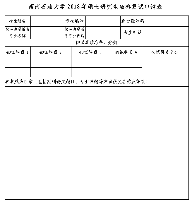 三、復試名單公布 化學化工學院確定兩類(學術型、專業學位)參加復試的考生名單,并在復試前提前在化學化工學院(http://hgy.swpu.edu.cn)網上進行公示。要求所有復試考生均應參加本辦法規定的復試內容。 四、復試方式和復試內容。 復試包括筆試和面試。 1、筆試 (1)化學化工學院組織一門多科性的綜合筆試。總分100分,考試時間60分鐘。根據報考專業的不同分別確定筆試內容,化學工程與技術、化學工程(專業學位)兩個專業的筆試內容為對化學基礎和化工專業課等相關內容的綜合性運用,著重考察學生對本學科發展前沿、科學問題與對本科知識體系的整體性把握,同時包含了專業外語和邏輯思維的考察。環境科學與工程和環境工程(專業學位)兩個專業的筆試內容為化學基礎和環境專業課等相關內容的綜合性運用,著重考察學生對本學科發展前沿、科學問題與對本科知識體系的整體性把握,同時包含了專業外語和邏輯思維的考察。 (2)符合以下條件之一的均須參加同等學力加試: 1、 本科結業生; 2、 高職高專考生; 3、 成人教育應屆本科畢業生, 4、 在復試時尚未取得本科畢業證書的自考和網絡教育考生。 以上同等學力參加復試的考生,在參加上述(1)的考試科目外,還必須加試2門專業主干課程,加試科目參照2018年招生簡章,每門考試科目總分各100分,考試時間各3小時。具體請咨詢化學化工學院復試領導小組。該成績不計入復試成績,但其分數作為是否錄取的否決條件。 (3)筆試成績(折合為百分制)占復試成績的30%。 2、面試 (1)化學化工學院面試重在考核考生的綜合素質(專業素養、思維能力及創新精神、人文素養、思想政治素質和道德品質等)和利用外語進行溝通交流的能力等內容。 (2)每位考生的面試時間不少于20分鐘。 (3)面試過程中要求面試場所與等候場所分離。面試場所設在西南石油大學明德樓A區化學化工學院辦公區。 (4)各復試小組秘書須認真填寫《西南石油大學碩士研究生面試考核記錄表》,對每位考生的作答情況進行詳細記錄,復試小組所有成員當場評分,平均分即為考生的面試成績。對考生復試的結果要有明確意見,給出成績和評語,并對考生復試結果負責。 (5)面試成績(折合為百分制)占復試成績的70%。其中面試成績中外語能力成績占面試成績(折合為百分制)的30%,綜合素質成績占面試成績(折合為百分制)的70%。 五、復試費收取標準 按照省考試院和川發改價格【2012】264號文件精神執行,研究生復試費收取按照每生120元,同等學力報考研究生另收加試科目考試費80元/人。 六、復試時間和地點 (1)復試時間安排 本次復試招生將分批次進行,每批次提前通知考生,考生應按復試通知規定的時間到明德樓A523報到,接受資格審查,然后參加筆試、面試和體檢,辦理完所有手續后方可離開。具體復試時間、地點將提前兩天在化學化工學院網站(http://hgy.swpu.edu.cn)公告欄上通知。 (2)體檢 所有考生在復試期間都必須進行體檢,請考生自行前往。體檢時要求前8個小時空腹,時間:全天,地點:西南石油大學校醫院。考生可以自行安排時間前往體檢,但不能影響筆試和面試,未能按時出席筆試和面試的責任自負。 (3)說明 ①所有考生必須按照規定時間參加復試,延誤造成一切責任自行承擔。 ②考生對復試有疑慮可向學院復試監督小組反映,復試學術裁決由學院復試錄取領導小組負責。 ③復試完畢考生需簽字確認,非定向考生需領取調檔函。 第四條 復試總成績一、復試總成績 復試總成績=筆試成績(占比30%)+面試成績(占比70%)。 二、同等學力考生加試課程成績不計入復試成績,但是加試成績低于60分者不得錄取。 第五條 復試的監督和復議一、實行責任制度和責任追究制度。化學化工學院研究生招生錄取工作領導小組對復試過程的公平、公正和復試結果全面負責。要完善對復試工作過程的監督,嚴肅處理違紀違規事件。 二、實行監督制度和巡視制度。復試監督小組對復試工作進行全面、有效監督,選派專門人員到復試現場巡視。 三、考生對復試結果有異議者,應在復試結果公布后三天內向西南石油大學研招辦(電話:028-83032120)提出復議的書面申請,由研究生招生復試錄取工作領導小組組織復議,并將復議結果及時告之該考生。 四、對于復試合格、擬錄取的考生,應向考生所在單位函調人事檔案,全面審查其政治情況。 第六條 錄取工作一、錄取成績=(初試總成績/初試總成績滿分)×100×50%+復試總成績×50%。 二、保送生不計算錄取成績。 三、按照學校下達的招生計劃,將考生錄取成績分專業、分類別(學術型和專業學位型),降序排名,根據各專業計劃的招生規模,從高分向低分錄取。各專業擬招生計劃如下: 1、化學工程與技術:70人; 2、環境科學與工程:20人; 3、化學工程(全日制):45人; 4、環境工程(全日制):18人; 5、化學工程(非全日制):6人; 6、環境工程(非全日制):6人。 7、單考非全日制專碩:1 此次擬共招收165名碩士研究生,其中學術型90名、專業學位75名。 四、有下列情況之一者,不予錄取: 1、思想政治素質和品德考核不合格者。 2、體檢不符合教育部規定者。 3、加試課程(總分100分)任意一科低于60分者。 4、復試成績低于60分者。 5、報考資格不符合規定的(包括經考生確認的報考信息填寫錯誤引起的)。 6、未通過或未完成學歷(學籍)審核的考生(學歷有疑問,要求