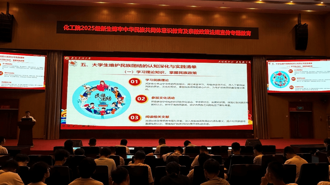 近日,化學化工學院2025級新生入學專題教育系列活動圓滿落幕。六場主題鮮明的專題講座,從校園適應到安全防護,從校史傳承到價值引領,從法紀規范到未來規劃,全方位為新生搭建融入校園的橋梁,助力其在化學化工領域穩健啟航。 首場適應性教育講座上,彭懷雪老師以“解鎖大學新身份”為主題,用幽默語言結合案例,從學習方法、人際關系、時間管理等方面化解新生迷茫。“原來大學實驗報告有這么多學問!”新生李同學恍然大悟,迅速記錄實用技巧。 日常安全教育由蔡小茵老師主講,她通過安全警示視頻、急救演示,圍繞宿舍用電、實驗室規范、出行防騙展開。“這些安全細節關乎學習生活,必須牢記。”新生在互動環節積極發言,筑牢安全意識。 白志斌老師的校史校情教育與大學精神解讀講座,帶新生回顧學校發展歷程與學院學科優勢。老照片、奮斗故事讓新生深刻體會“崇德尚學、求是創新”的大學精神,增強歸屬感與認同感。 鑄牢中華民族共同體意識教育及宗教政策法規宣傳講座中,劉斌祥老師結合文明禮儀,以案例分析、政策解讀引導新生樹立正確民族觀、宗教觀,學會尊重多元文化,展現大學生良好風貌。 程美容老師的法紀教育講座聚焦網絡文明素養,從法律法規、校紀校規層面,提醒新生警惕網絡詐騙、遠離謠言,做到依法上網、文明上網,守護個人信息與校園網絡環境。 國內國際深造導航講座里,鹿嘉悅老師詳解考研備考、出國留學、就業規劃等信息,為新生梳理發展路徑。“老師的講解讓我對未來規劃更清晰,接下來要制定好學習目標。”新生王同學說。 此次專題教育內容豐富、針對性強,為新生快速適應大學生活、明確發展方向奠定基礎。未來,化學化工學院將持續關注新生成長,開展更多優質育人活動,助力學子在化學化工領域綻放光彩。
