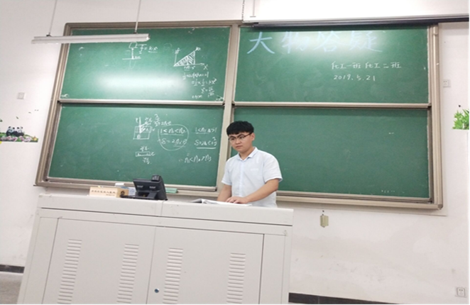 | 2018級化工一班開展“拉手”學習互助小組大物答疑2019-05-26  作者:  編輯:陳剛  審核:  瀏覽:[]  大一的下學期開始了大學物理的學習,由于同學們對于物理的學習可能還存在一些問題和疑惑,學習效果不是非常的理想。經過班委的共同商討,化工一班和化工二班在晚自習期間共同舉辦了大學物理的答疑活動。本次答疑收集了大家普遍有疑問的題目和知識點。特此在兩個班中選出了兩名成績優異的同學為大家答疑解惑,爭取用最少的時間解決更多的問題。 化工一班靳賽賽同學的講解得到了很多同學的肯定,對平常大家容易忽視遺漏的知識點給大家進行詳細的講解,每一道題抓住解題關鍵點和核心知識點,進而把同學們提出的難題都講的得通俗易懂。 化工二班許正偉同學用有趣的開場白開始了他的大學物理答疑課堂,幽默的語言活躍了課堂的氣氛。在物理難題講解過程中,許正偉為讓同學們更透徹掌握知識點,為大家講解不同的解答方案,以及通過幾道習題的講解,以點帶面,為大家拓展聯系更多的知識點、易錯點等,用大多數同學能夠更好理解接受的方式對習題進行盡心細心的講解。 班級同學邢皓表示,通過此次的大物答疑解決了很多自己在學習中存在的問題,為之后大物復習掃清了很多難題障礙,也讓班級同學們學到了很多解題方法和技巧。自己很感謝兩位同學的辛苦付出,雖然時間不長,但也讓我們所有的同學都有所收獲,在臨近的大物考試中讓我們又多了一份自信與底氣。并且很期待以后能多開展類似的答疑活動。(文/楊剛 圖/邢皓)