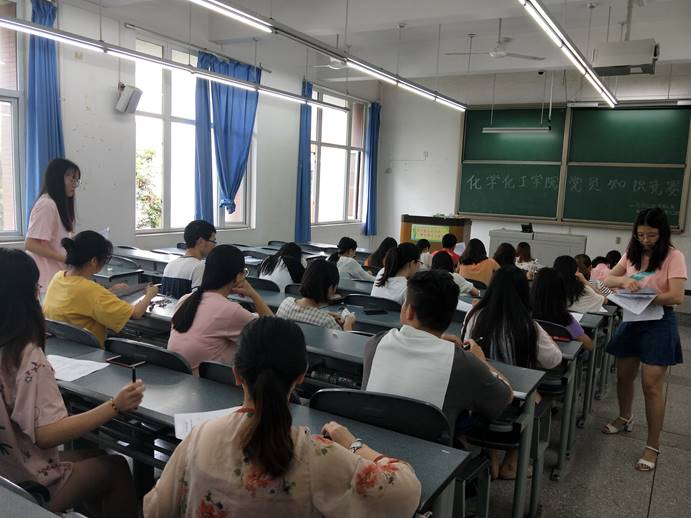 | 學(xué)黨史,頌黨魂,立斗志,揚(yáng)青春——化工院黨站舉辦黨員知識(shí)競(jìng)賽2019-06-22  作者:  編輯:陳剛  審核:  瀏覽:[]  為加強(qiáng)黨的基層組織建設(shè),提升黨員黨性修養(yǎng), 6月22日上午9點(diǎn),化學(xué)化工學(xué)院學(xué)生公寓黨員服務(wù)站暨先鋒集結(jié)網(wǎng)絡(luò)文化工作室于明德樓A301舉辦了以“學(xué)黨史,頌黨魂,立斗志,揚(yáng)青春”為主題的黨員知識(shí)競(jìng)賽。此次競(jìng)賽面向全院黨員、預(yù)備黨員以及入黨積極分子,旨在通過(guò)競(jìng)賽的形式,掀起學(xué)習(xí)貫徹黨員義務(wù)的熱潮,推動(dòng)學(xué)習(xí)活動(dòng)深入開展,檢驗(yàn)黨性修養(yǎng)的學(xué)習(xí)成果。 此次競(jìng)賽活動(dòng)得到各黨支部的高度重視,得到全體黨員干部的熱烈響應(yīng),迅速興起學(xué)黨史,頌黨魂,立斗志,揚(yáng)青春的熱潮。試題共分為單選題、多選題、填空題、判斷題以及簡(jiǎn)答題五種題型,各支部50余名黨員、預(yù)備黨員和入黨積極分子組隊(duì)參賽。賽前,各參賽隊(duì)進(jìn)行了精心的準(zhǔn)備。 活動(dòng)最后,化工院黨站負(fù)責(zé)人程新余作總結(jié)發(fā)言,她說(shuō)到:“‘學(xué)黨史,頌黨魂,立斗志,揚(yáng)青春’,最主要的是要看到黨章有什么變化,是在什么樣的歷史背景下產(chǎn)生了變化,哪些是今后重點(diǎn)要學(xué)習(xí)的。本次知識(shí)競(jìng)賽,目的是以賽促學(xué),切實(shí)增強(qiáng)學(xué)院學(xué)生黨員的“四個(gè)意識(shí)”,全面營(yíng)造學(xué)習(xí)十九大精神的濃厚氛圍。希望全體學(xué)生黨員以十九大精神為指引,在學(xué)習(xí)、生活、工作中不斷取得新的成績(jī)。” 此次活動(dòng)緊扣“學(xué)黨史,頌黨魂,立斗志,揚(yáng)青春”這一主題,為化工院廣大學(xué)生黨員及積極分子等提供了學(xué)習(xí)、了解黨的基本知識(shí)、持之以恒開展黨史黨章學(xué)習(xí)教育的良好契機(jī),從而更加堅(jiān)定黨的理想和信念,立足本職,牢記使命,踐行宗旨,奮發(fā)有為,毫不動(dòng)搖地沿著黨指明的正確方向奮勇前進(jìn)。(文/圖 謝友清)