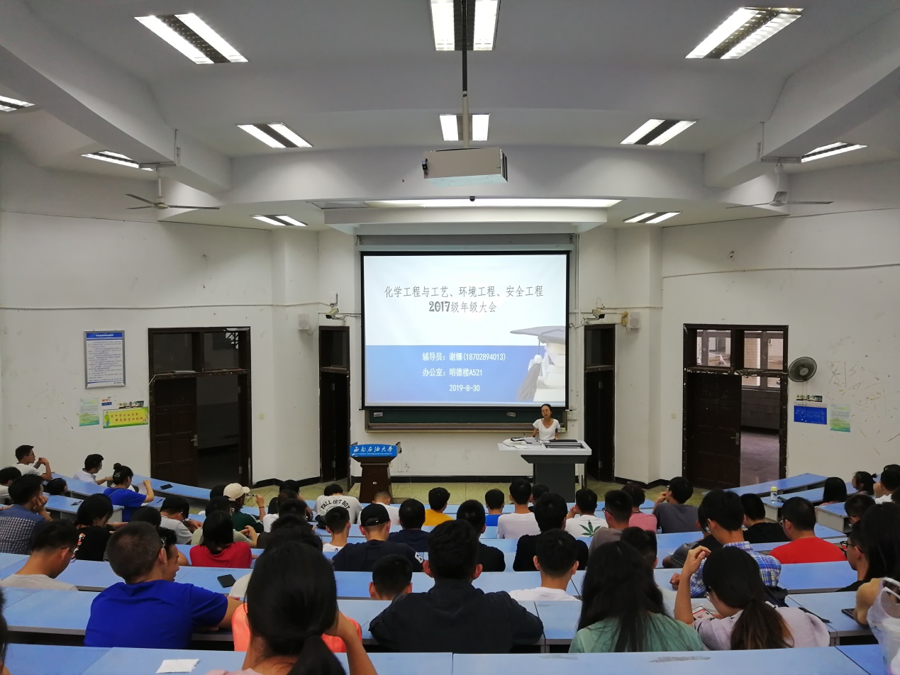 | 化工院開展化學工程與工藝、環境工程、安全工程2017級新學期年級大會2019-08-30  作者:文/羅銀川 圖/王文韜  編輯:陳剛  審核:  瀏覽:[]  8月30日晚6點30分,化工院于思學樓B110開展化學工程與工藝、環境工程、安全工程2017級新學期年級大會。大會由輔導員謝娜主持開展。她主要從成績分析、就業形勢、學習方法和安全教育等幾個方面向在場同學做出了詳細講解,希望全體同學能在新學期伊始定好目標,奮斗目標,實現目標。 在年級大會上謝娜就大三學業規劃進行了說明。她首先對環境工程、化學工程與工藝、安全工程三個專業的上學期成績作了具體分析,并對學習進步顯著的同學進行表揚,并鼓勵同學們向優秀同學學習。她鼓勵優秀的同學主動一對一或者一對二輔導學業困難同學,并要求學業困難的同學,提高自主學習的主動性。除此之外,她還對三個專業的英語四六級、計算機二級過關率進行分析,并再次強調學生手冊新修訂的一系列注意事項,特別提到學生的安全問題的重要性,包括寢室安全,實驗安全等,同時,她重申學業警示、降級及退學標準,希望學生們引起重視,能夠順利完成學業。最后,她對學生在考研方面的疑惑進行解答,列舉2021年的考研重要時間安排表,并強調了誠信考試,誠信做人的重要性。 本次年級大會結束后,2017級環境一班班長陳紫炫提到:“本次年級大會讓我感受到時間非常緊迫,我要努力學習專業課打好基礎,也要開始準備考研了。大三的學習任務很重,增強自學能力,更能從容成長。”(文/羅銀川 圖/王文韜)