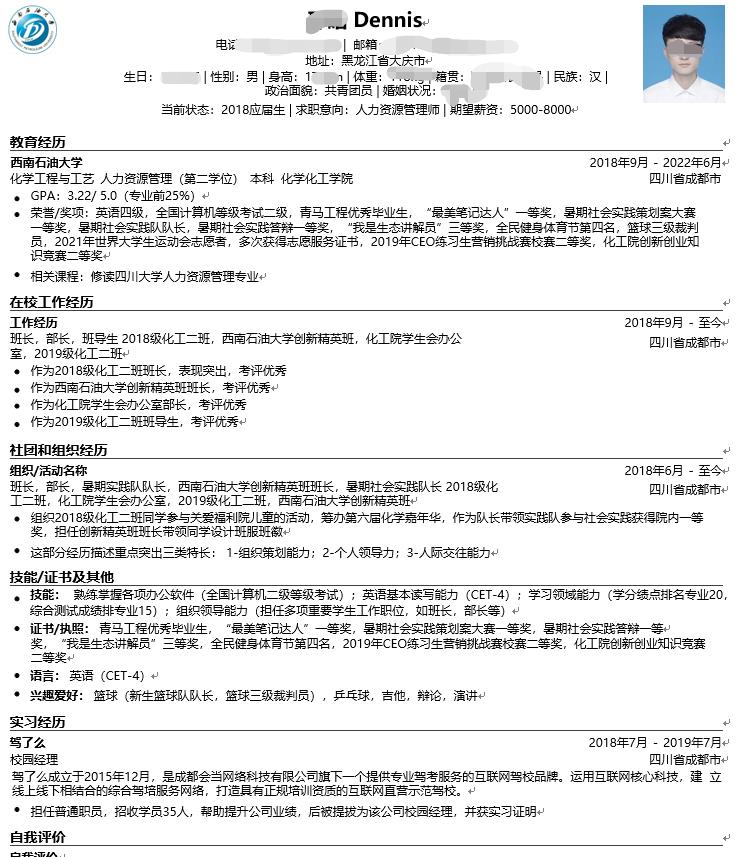 個人簡歷是求職材料中最為重要的部分,是求職者全面素質和能力體現的縮影,學校應屆畢業生也即將在下學期面臨求職和考研的各種面試。11月11日至25日,化工院團委學習部組織開展了個人簡歷制作大賽,以借此契機加強提高學生們在簡歷制作方面的能力,為未來的面試做足準備。 本次比賽面向全院學生開展。參賽同學制作的簡歷,需要在比賽要求的基礎上,展現出更多富有個人特色的內容。據悉本次比賽征集到近百份簡歷,而比賽主辦方只選擇出18份參與到后期的線上投票中。通過線上投票,本次比賽評選出了一等獎3名、二等獎6名、三等獎9名。 本次比賽的參賽者邢皓談到:“本次活動為我們搭建了一個可以相互學習和交流的平臺,讓我們更好地了解到用人單位對應聘人員的要求,也讓我們做好簡歷的重要性有了更加深刻的體會。” 本次大賽負責人表示,學院希望通過此次個人簡歷制作大賽,普及簡歷書寫的基本理念,加強同學們在設計與排版等相關方面的學習,以增強同學們在人際交往、求職面試以及未來應對社會職場競爭等方面的能力,并為同學們開辟出一條更加暢通的求職路。(文/劉易 圖/王玥)