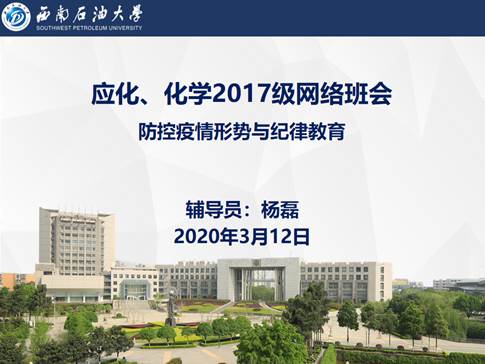 為進一步做好疫情防控期間學生教育管理工作,積極引導廣大學生不信謠、不傳謠、不造謠,化學、應用化學2017級于3月12日晚20:00在輔導員楊磊的組織下召開了主題網絡班會,對防疫形勢和紀律要求進行再講解、再強化。 會議伊始,楊磊組織全體參會同學深入學習了習近平總書記給在首鋼醫院實習的西藏大學醫學院學生重要回信精神,要求同學們樹立主人翁意識,明晰自身所肩負的時代責任和歷史使命,努力提升專業技能水平,增強綜合素質,到祖國最需要的地方去建功立業。同時,楊磊就目前特殊形勢下網絡教學要求做了再次強調,鼓勵廣大同學充分利用一切教學資源,嚴格自律,確保思想不掉線、學習不掉隊。 隨后,楊磊帶領全體同學再次學習了學校《關于2020年寒假學生暫不返校的緊急通知》和《西南石油大學防控新型冠狀病毒肺炎疫情期間學生違紀處分補充規定》,說明了近期其他高校出現的個別學生違反防控規定私自返校受到紀律處分的案例,要求所有學生不得有瞞報謊報、造謠傳謠、私自外出等行為,在學校未發布開學返校通知前,嚴禁提前返校。 此外,針對所帶班級即將進入畢業年級的情況,楊磊根據《西南石油大學本科學生學籍管理辦法》(西南石大教[2017]54號),重點講解學籍清理、進入畢業年級條件、跳級、畢業(結業、肄業)、學位取得等學生關心的事宜,同時再次分析了就業、考研形勢,做好生涯規劃,確保全體學生正常完成學業。 (文、圖/周先芝、王洋)