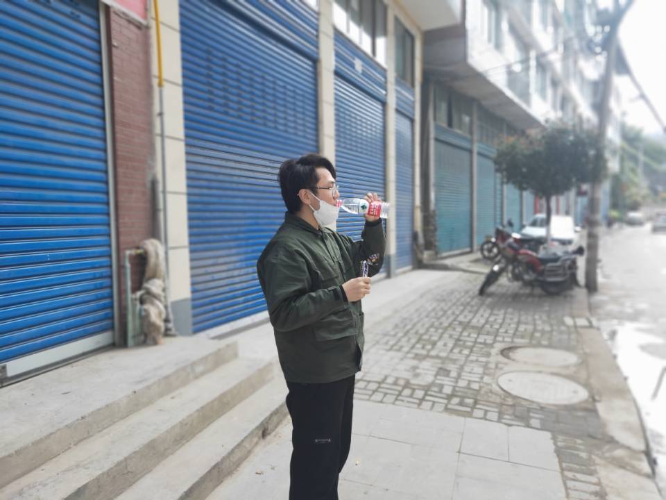 餓了啃塊餅干充饑,渴了就用路邊一瓶冰冷的礦泉水解渴。過程雖艱辛,但想起奮戰在武漢等重災區的醫務工作人員,各地基層的一線志愿工作者們,他知道,自己不缺同行人,總有人和你并肩作戰在身旁!