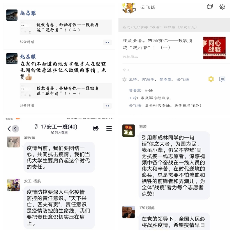 3月26日,化工院開展線上“共抗疫情、愛國力行”主題宣傳活動第五期——學生抗“疫”故事分享會。本次活動以線上班會的形式,分專業、年級為單位進行了集中收看,通過疫情期間西油志愿者們抗“疫”故事視頻,學習身邊榜樣的奉獻擔當。 視頻中,有在本次疫情重點區域湖北當志愿者,每天穿梭于倉庫和醫院,保證醫療物資安全送達的湖北小伙兒;有身為黨員,主動請纓,向全村宣傳防疫知識的研究生;還有不顧氣溫驟降,堅持每日站在村口,排查人員,登記信息的小鎮姑娘,更有村口擔任防控“志愿兵”的退伍老兵…其中,我院化學工程與工藝2017級學生卿成林每天巡邏13小時,排查1200名居民,累計發動了11943人為“抗疫”聲援,并被共青團成都市委評委疫情防控“高校青年突擊手”的事跡,同樣受到了同學們點贊。卿成林表示:“我們是普普通通的志愿者,代表的是新青年一代,在國家需要時,我們就應該勇敢站出來!” 故事分享過程中,同學們紛紛在“西柚學工”公眾號評論區留言,并在班級群和朋友圈中積極討論,發表看法。化工2017級趙志銀在朋友圈轉發時寫到:“青春的使命,是學習與成長,更重要的,是行有所為,扛起時代擔當!”安全工程2017級潘樹銘在班級群討論中發言道:疫情當前大家要團結一心,共戰疫情,作為大學生的我們,更要發揮青年一代影響力,為社會貢獻青春力量。(文/圖 李映宏)