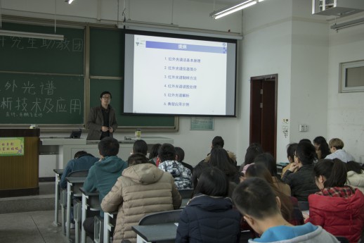 化工院研究生助教團圍繞大精設備所開設的一系列“共研佳化”精品課堂于3月16日下午在明德樓A302進行了第一講——紅外光譜分析技術及應用,化工院實驗教學中心主任朱鵬飛擔任主講老師,助教團全體成員以及化工院部分研究生與本科生參加了本次培訓。 朱鵬飛,高級實驗師,主要從事儀器分析測試技術及環境催化等方面的研究工作,現任西南石油大學化學化工實驗教學中心主任。在本次授課中,他為參與培訓的學員系統概述紅外光譜基本原理、簡述紅外光譜儀。在講解中他提到,選用合適的表征手段,是實驗甚至是論文成功的第一步,大家不能盲目的選用分析儀器。只有滿足兩個條件:一是分子振動頻率和紅外輻射頻率相等;二是分子振動必須伴有瞬時偶極矩變化,這樣才能產生紅外光譜,方可選擇紅外分析。之后,他對紅外制樣技術進行了細致講解,包括對樣品的要求、制備以及譜圖的表示、修整和識別。課堂上,他選擇原理結合實際的方式,一邊普及紅外相關理論,一邊列出在操作中可能出現的問題,一一對應解決。他還著重指出了平時同學們在操作中的常見錯誤,并對這些不當操作進行分析,給予解決方案,提醒同學們一定要遵照測樣要求并按正確的程序進行紅外測試。而對于儀器的維護,他也做出了具體說明,希望大家共同維護設備的正常運轉。兩節課下來,大家對紅外有了更為深刻的認識,也對實驗研究方向有了進一步的思考。 臨近尾聲,團長楊濤對本次培訓進行了總結,并代表助教團對朱鵬飛老師傾力授課表示衷心的感謝。楊濤表示,本學期助教團將繼續舉辦多樣化、多層次、多方位的大精設備課堂培訓課程,希望有需求以及愛好儀器分析的同學和老師參與進來,與助教團一起共同打造“助學助長”的優秀平臺。 (化工院助教團 鐘明鏡)