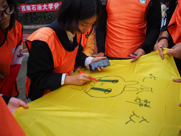 在14日的素質拓展活動中,同學們自由組隊,自行設計隊旗、口號,“對對隊”、“小可愛隊”等活潑的名字層出不窮,“我們的團隊名字是油你一默,希望我們能夠在石油大學為大家帶來快樂。”組隊完畢,素質訓練活動中,利用“開心大麻花”如何在面對面手拉手的情況下實現背對背不松手,感悟團隊智慧;通過“芝麻開門”極限沖刺體驗團隊信任。在完成“不可能完成的任務”時,2017級化工專業的楊晨表示,在大學校園里“1個小時內找到一本初二年級上冊語文課本”看似不可能,但團隊成員挨個在校內店鋪詢問,居然找到了一本,她感嘆“任何事情只要敢于邁出那一步,總有實現的可能。”