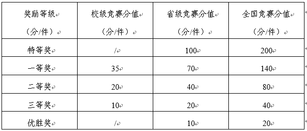 表1 各級(jí)競(jìng)賽名次和分值對(duì)應(yīng)表