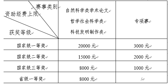 3.本次“挑戰(zhàn)杯”校內(nèi)選拔賽參賽作品的立項(xiàng)資助以成果為導(dǎo)向,資助獲得省級(jí)一等獎(jiǎng)及以上獎(jiǎng)項(xiàng)的優(yōu)秀作品。按照審批的作品經(jīng)費(fèi)預(yù)算(經(jīng)費(fèi)預(yù)算表見附件4,在資助經(jīng)費(fèi)上限和學(xué)校財(cái)務(wù)報(bào)銷規(guī)定的范圍內(nèi),資助經(jīng)費(fèi)實(shí)行實(shí)報(bào)實(shí)銷原則。不同類別、不同獎(jiǎng)項(xiàng)的資助經(jīng)費(fèi)上限見表2。