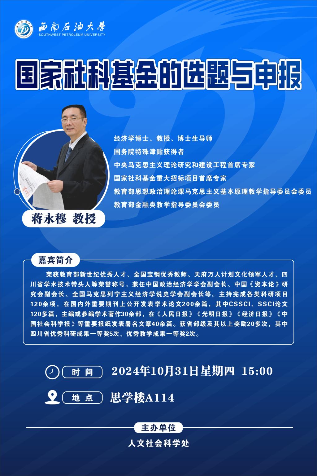 蔣永穆,經濟學博士、教授、博士生導師。國務院特殊津貼獲得者,中央馬克思主義理論研究和建設工程首席專家、國家社科基金重大招標項目首席專家,教育部思想政治理論課馬克思主義基本原理教學指導委員會委員、教育部金融類教學指導委員會委員。榮獲教育部新世紀優秀人才、全國寶鋼優秀教師、天府萬人計劃文化領軍人才、四川省學術技術帶頭人等榮譽稱號。兼任中國政治經濟學學會副會長、中國《資本論》研究會副會長、全國馬克思列寧主義經濟學說史學會副會長等。主持完成各類科研項目120余項,在國內外重要期刊上公開發表學術論文200余篇,其中CSSCI、SSCI論文120多篇,主編或參編學術著作30余部,在《人民日報》《光明日報》《經濟日報》《中國社會科學報》等重要報紙發表署名文章40余篇。獲省部級及其以上獎勵20多次,其中四川省優秀科研成果一等獎5次、優秀教學成果一等獎2次。