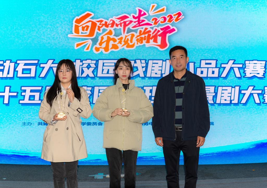 圖二 《從“心”開始》導(dǎo)演——區(qū)穎盈(中)代表學(xué)院領(lǐng)獎(jiǎng)