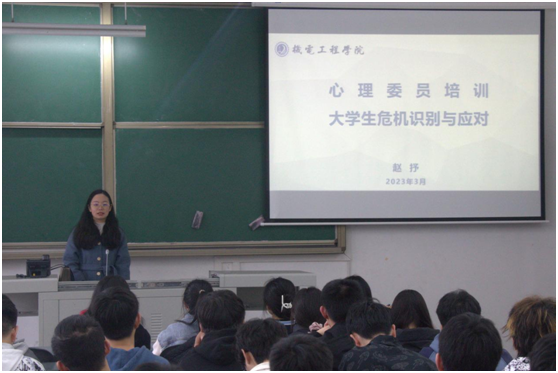 此次培訓講座,趙抒老師講述了“大學生心理健康”、“心理委員的職責”、“心理問題識別與應對”、“心理咨詢與求助渠道”等相關話題。對常見心理問題的識別、心理危機的處理以及心理求助的渠道等展開講解,著重強調了心理骨干如何識別和應對心理危機等。幫助班級心理骨干深入認識如何開展心理工作,并發揮心理委員在大學生心理健康教育工作中的積極作用。