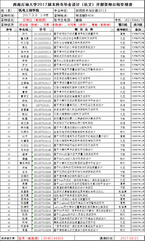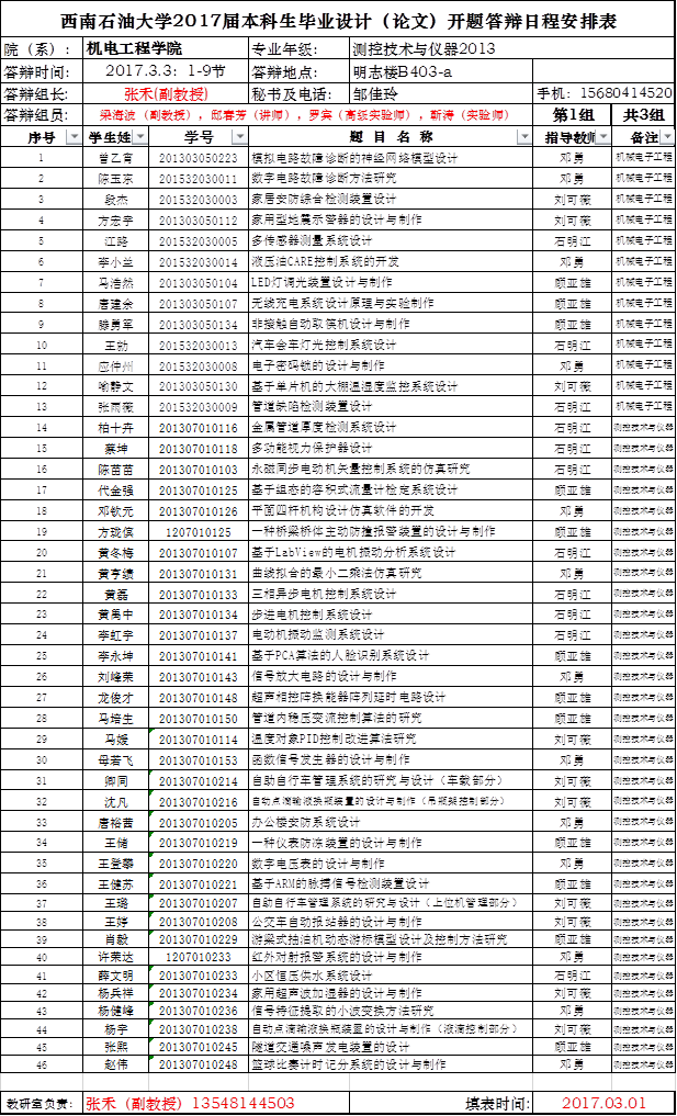機電院2013級本科各專業畢業開題答辯工作見具體安排,各位參加本次畢業答辯的學生及教師請注意以下事項: