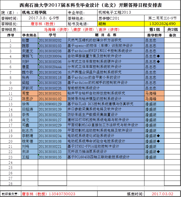 機電院2013級本科各專業畢業開題答辯工作見具體安排,各位參加本次畢業答辯的學生及教師請注意以下事項: