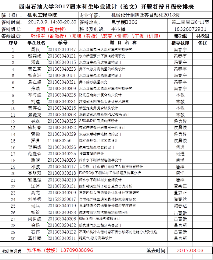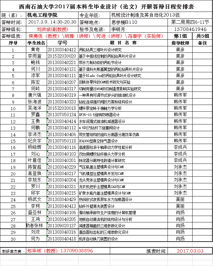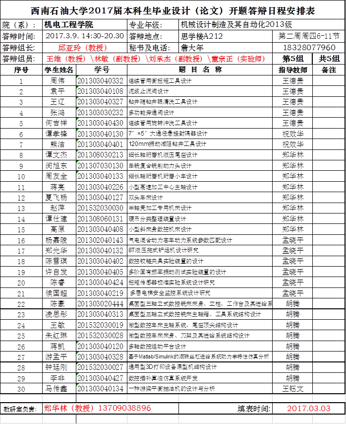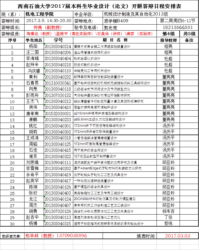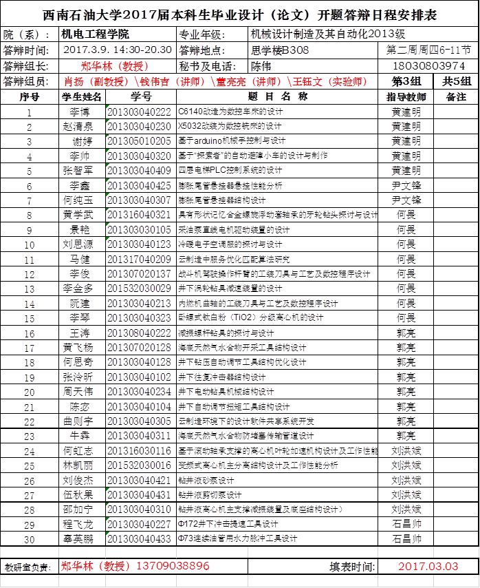 機電院2013級本科各專業畢業開題答辯工作見具體安排,各位參加本次畢業答辯的學生及教師請注意以下事項: