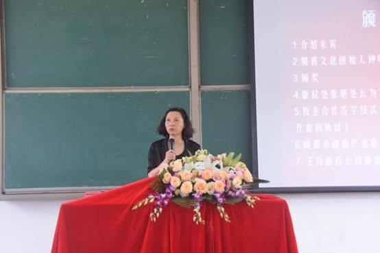 隨后在熱烈的掌聲中,王玲副校長與蜀菁文化創始人鐘明先生分別代表學校和企業簽署了校企合作協議,學校與成都蜀菁文化傳播有限公司、成都東陽木雕廠兩家企業在人才培養、競賽組織等方面建立了深層次的合作關系。