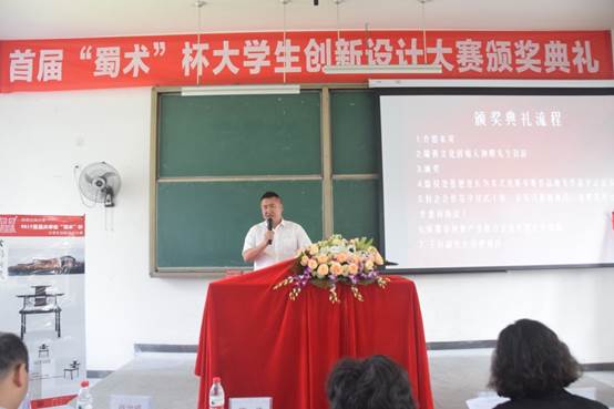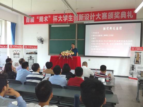 首先,蜀菁文化創始人鐘明先生上臺致辭,對本次“蜀術”杯大學生創新設計大賽的相關情況做了說明,他指出這次大賽針對傳統“陰陽”哲學觀,充分繼承明代家具優點,將傳統蜀繡、蜀錦與木器的特點相結合,試圖設計出具有巴蜀文化內涵的現代家具產品。從最終獲獎作品來看,效果理想,充分體現了同學們的創新能力,對同學們積極參與這次設計大賽表示衷心感謝,對西南石油大學自成立以來為社會輸送大量優秀人才表示由衷敬意,并希望通過資助比賽的這種方式,為大學生創新設計營造更好的氛圍、創造更好的條件,進一步加強企業和學校的合作。