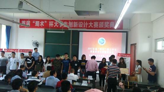 接著機電工程學院副院長韓傳軍宣讀了大賽結果,冷超霞、李宇航、楊枝龍等20名同學獲獎。獲獎同學在同學們熱烈的掌聲中領取了獲獎證書和獎品。成都市文廣新局版權處張艷處長宣讀了本次競賽的版權聲明并頒發證書,成都市創意產業聯合會張桂銘會長對同學們的獲獎作品表示肯定,并希望這些獲獎作品能參展11月份的“成都創意設計周”活動。