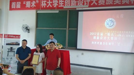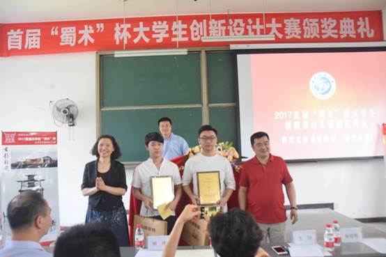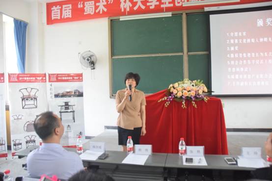 最后,王玲副校長致辭中對四川蜀菁文化傳播有限公司、成都東陽木雕廠對此次比賽的大力資助表示感謝。同時也對成都市文廣新局版權處、成都市創意產業聯合會、成都市版權協會、成都市版權事務中心、看度媒體等單位為此次競賽活動所做的相關工作表示感謝。王玲說,2017首屆“蜀術”杯大學生創新設計大賽是西南石油大學機電工程學院與兩公司合作進行的一次直接對接企業的競賽。整個競賽歷時將近半年,最終取得圓滿成功,并引起了成都數家媒體的關注,這是校企合作共同舉辦設計大賽很好地嘗試。王玲還指出,在當前“大眾創新、萬眾創業”的時代大背景下,努力提高學生理論和實踐相結合的能力,提高學生專業技術水平,培養產業發展所需要的專業人才是當今社會的迫切需求。學校必須要和企業緊密聯系,才能為社會和行業培養出更多、更優秀的人才,同時,通過校企合作,雙方充分發揮各自資源優勢,也才能合作共贏。