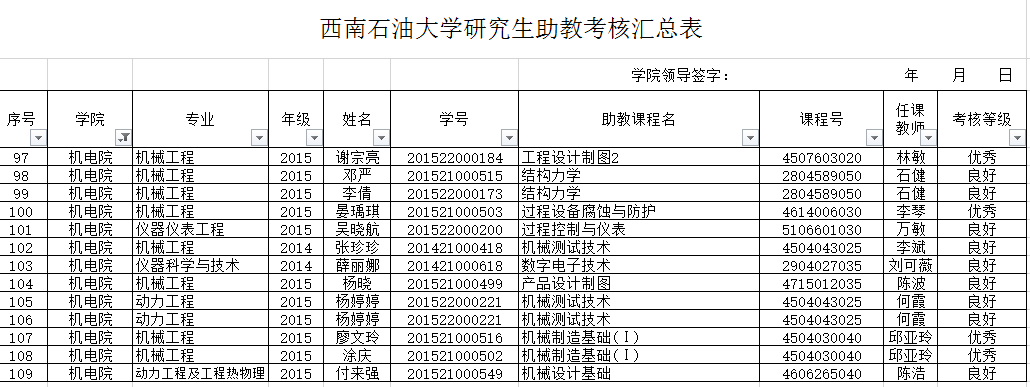 根據學院2017年春季學期助研考核安排,經過任課老師對所有助研教學班班課后作業和教學記錄情況的綜合打分和評議,評選出4名優秀(90分以上)、9名良好等級,現公示如下,對結果有異議可以聯系主講老師,溝通相關情況。