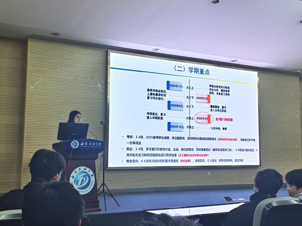 此外,結合年級特點,各輔導員精準發力。大一著重引導同學們樹立學習目標,做好學業規劃;大二大三圍繞職業規劃和專業提升,引導學生盡早明確規劃,專業提升上開展有針對性的積累實踐;大四學生聚焦就業和畢業,明確了新學期的安排部署,幫助學生提高就業能力和行動力;研究生主要圍繞本學期學習、生活、科研以及未來發展等方面進行分享交流。
