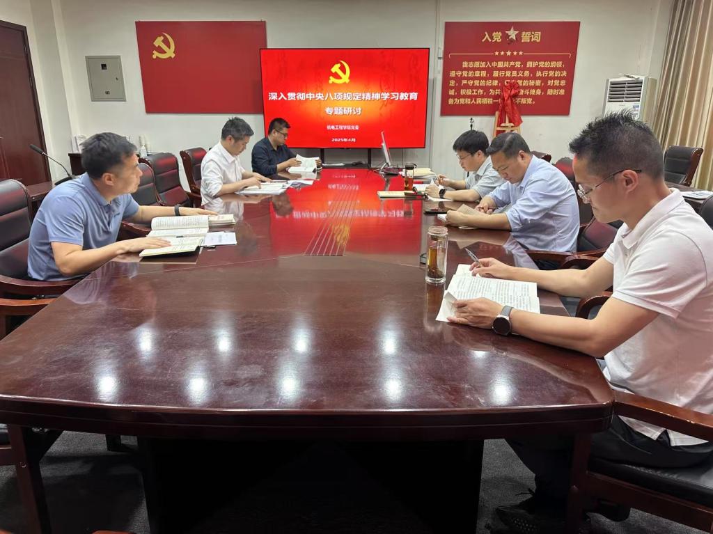 4月18日,機電工程學院黨委開展深入貫徹中央八項規定精神學習教育讀書班專題研討。學院黨委書記石明江主持研討會,學院黨委領導班子成員參加會議。