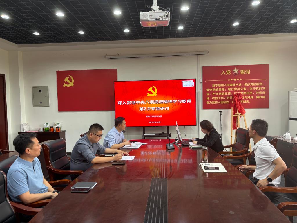 2025年4月25日上午,機電工程學院黨委學院舉行深入貫徹中央八項規定精神學習教育第二次專題研討。學院領導班子成員參加會議,會議由黨委書記石明江主持。