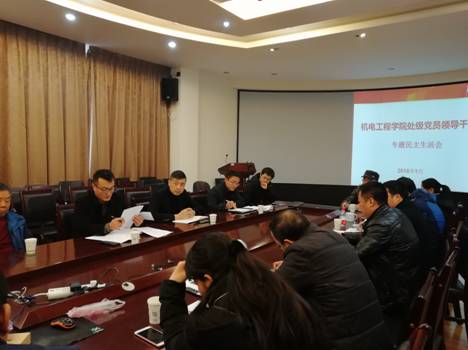 1月18日下午,機電工程學院明志樓B305召開了2017年度處級黨員領導干部民主生活會。組織部侯忠建部長參加了本次民主生活會,學院領導班子全體成員、科級干部,黨支部書記、教研室主任、教代會、教授會及教師代表參加了會議,會議由學院黨委書記李忠偉主持。