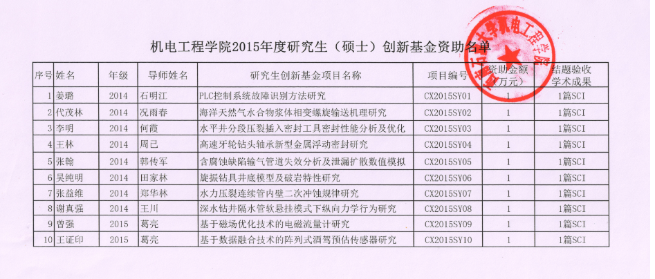 上一條:機電工程學院2015年秋季碩博士畢業論文答辯通 下一條:2015年秋季學期在職工程碩士(機械工程、動力工程)課程總表