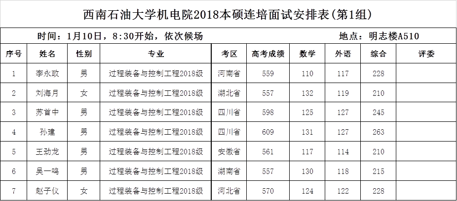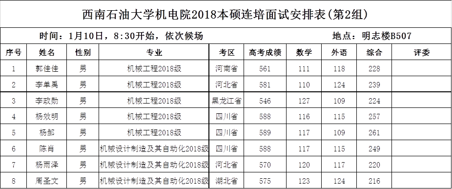 根據《機電工程學院2018年本碩連培生遴選實施細則》,在學校資格遴選的基礎上,經同學自愿報名,參加我院2018年本碩連培申請同學的面試安排如下:
