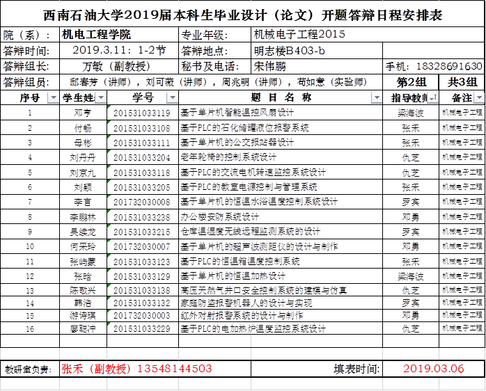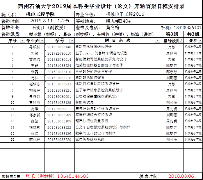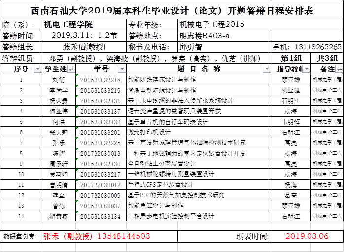 機電院2019屆本科畢業設計開題答辯-機械電子2015級(第1批)