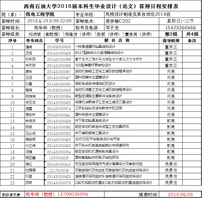 機電院2018屆本科畢業設計(論文)答辯安排-機械電子