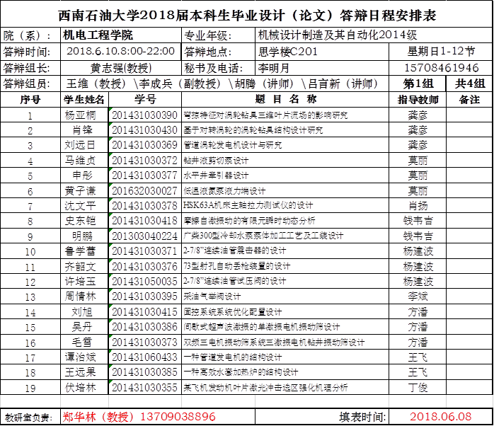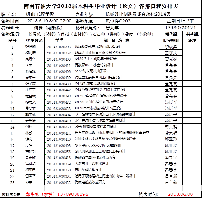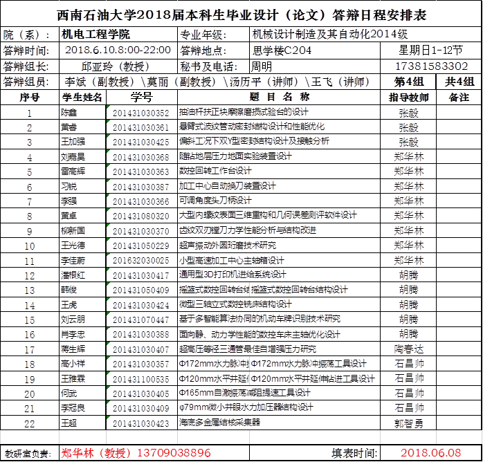 機電院2018屆本科畢業設計(論文)答辯安排-機械制造