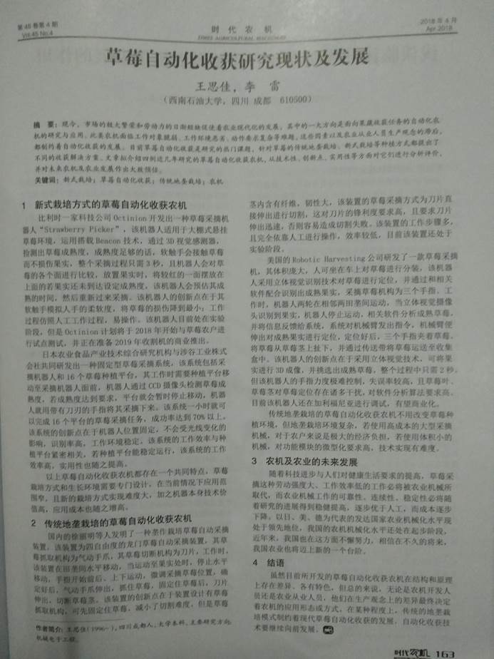 08序號支撐1:《草莓自動化收獲研究現狀及發展》正文